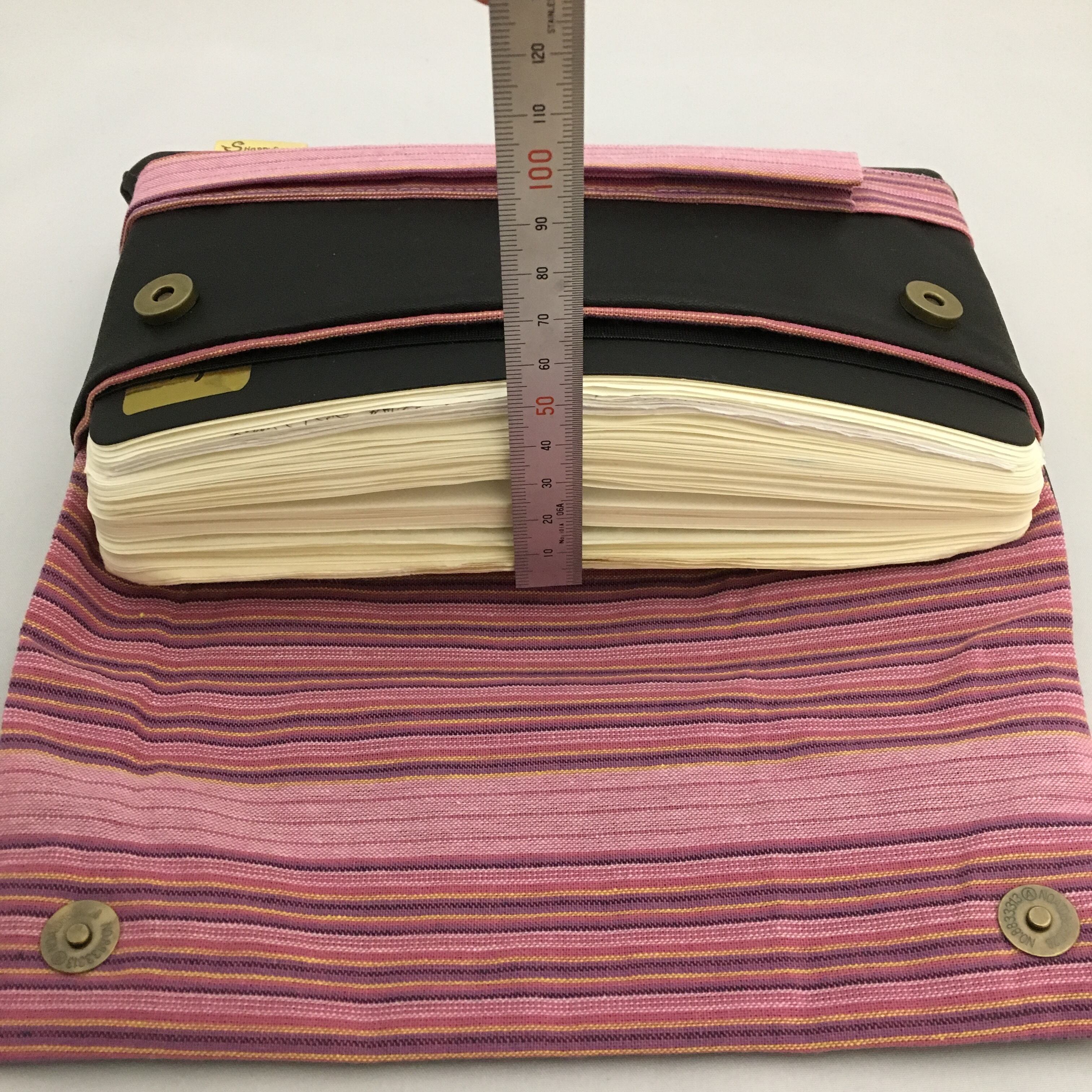 モレスキンノート ラージサイズ21cm×13cmが、厚さ5.5cmに膨れても入ります。