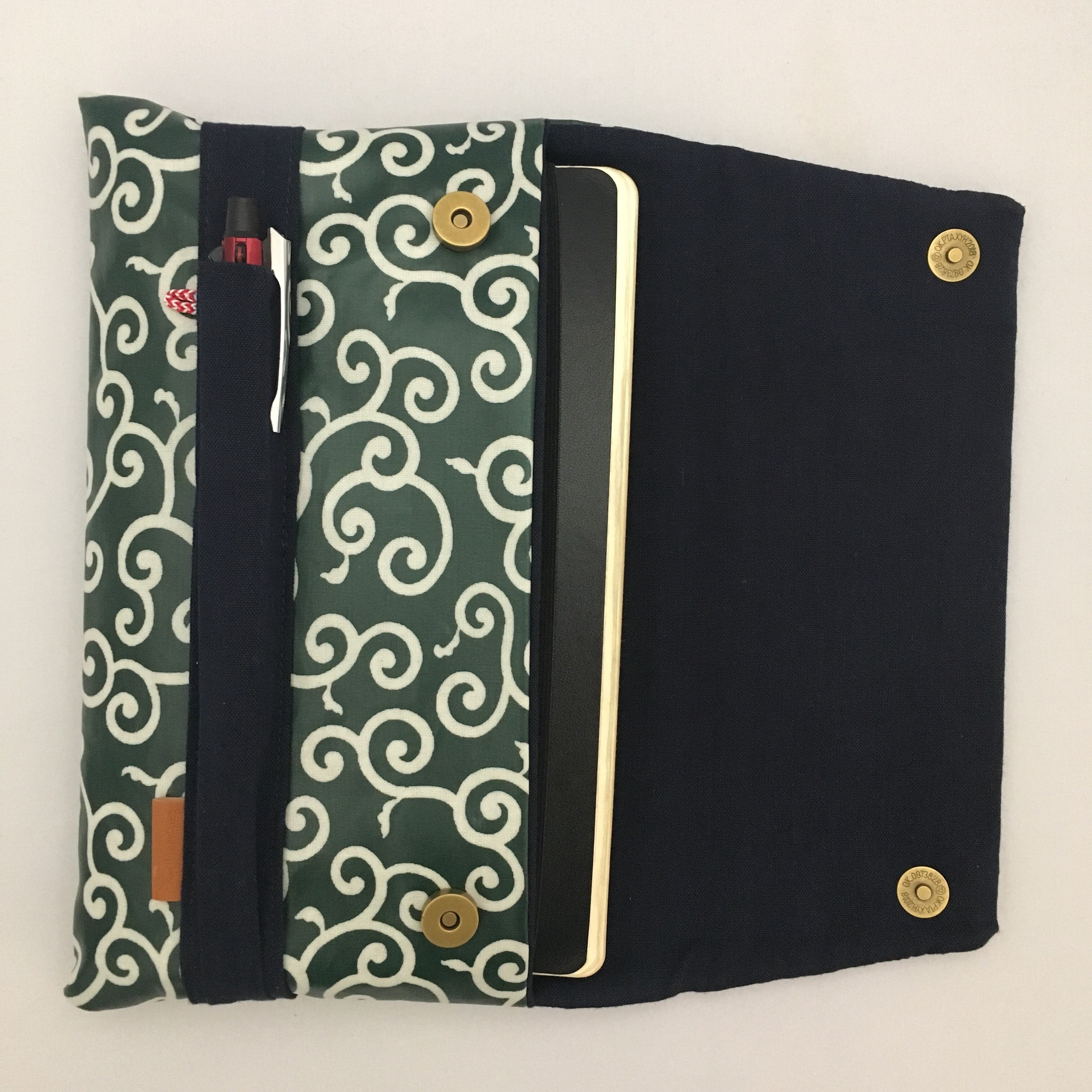 ①大切なノートを守るため、表生地は防水性のある生地を使っています。